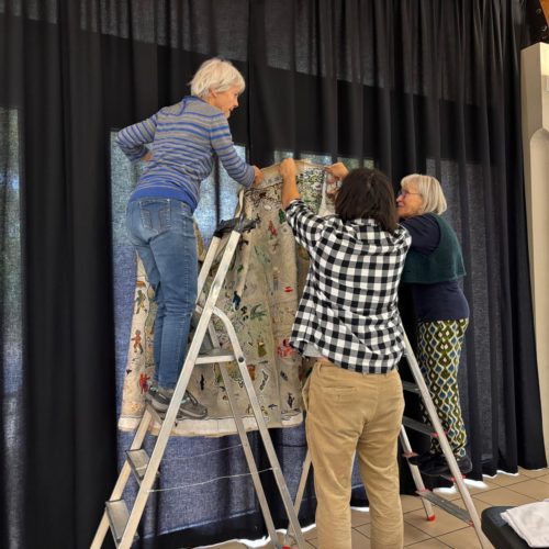 Installation de l’œuvre textile (ci dessus) et grand buffet (ci-dessous)