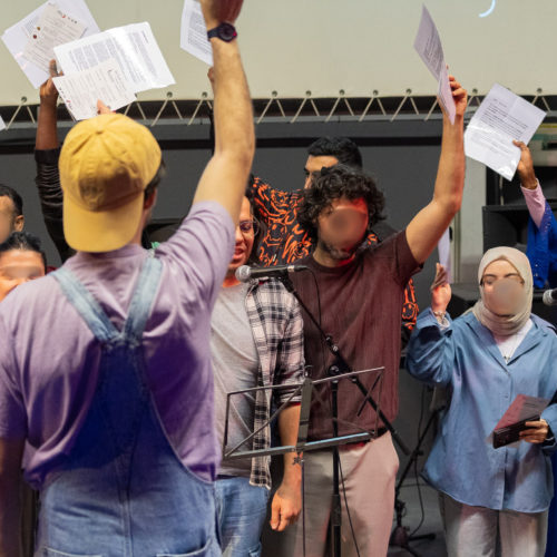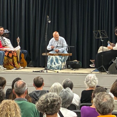 La journée s’est poursuivie avec des extraits du spectacle “Compagnons d’Exil, saison 2”, écrits et interprétés par des personnes accompagnées par le Collectif, accompagnées du musicien iranien Houtin Baghdadi.